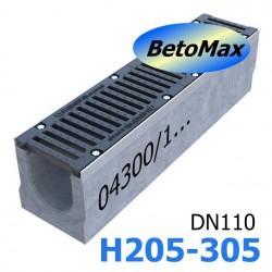 Название в проекты Лоток водоотводный BetoMax ЛВ-16.25.31-Б-У01 бетонный с уклоном с решёткой чугунной ВЧ "протектор" кл. E (комплект) 04300/1